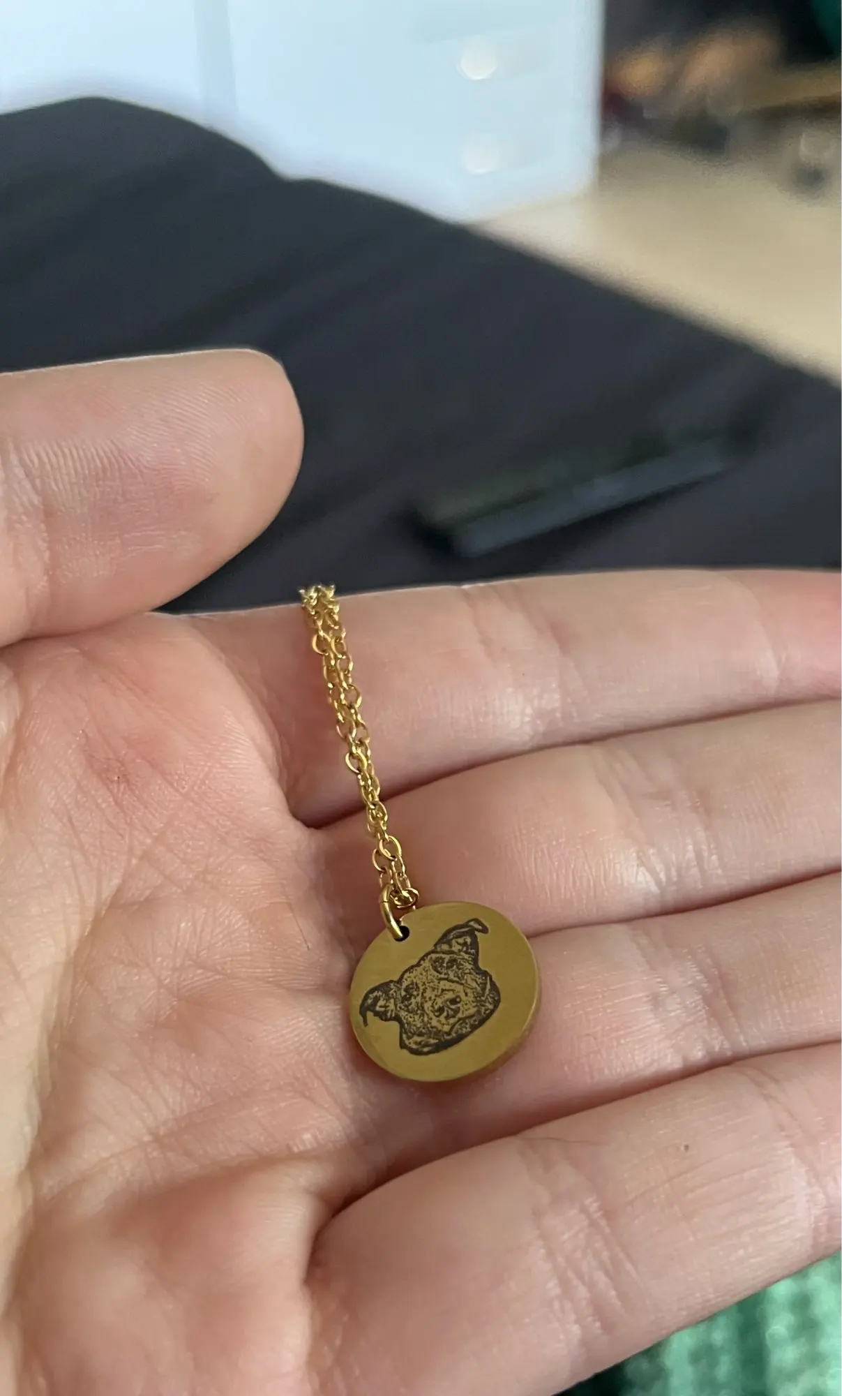I was a little worried at first about how well the engraving would turn out because my dog has such dark fur, and I thought the details in his face might not be as visible as with lighter dogs. But I’m absolutely blown away by the engraving, it captured every detail perfectly. I’m completely in love with this necklace of my baby!